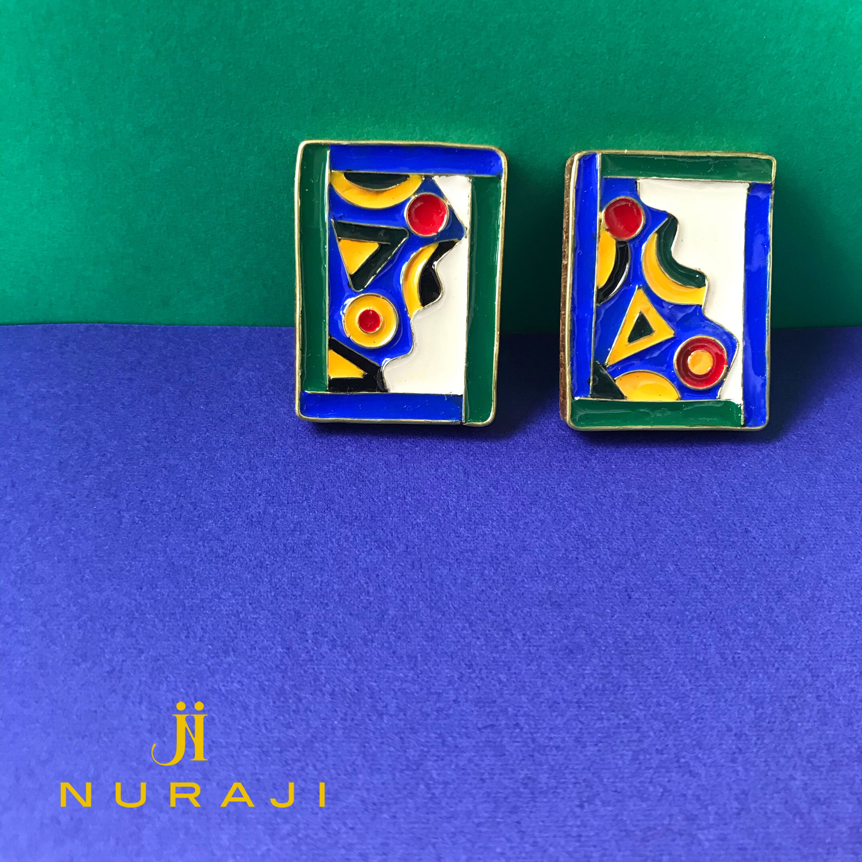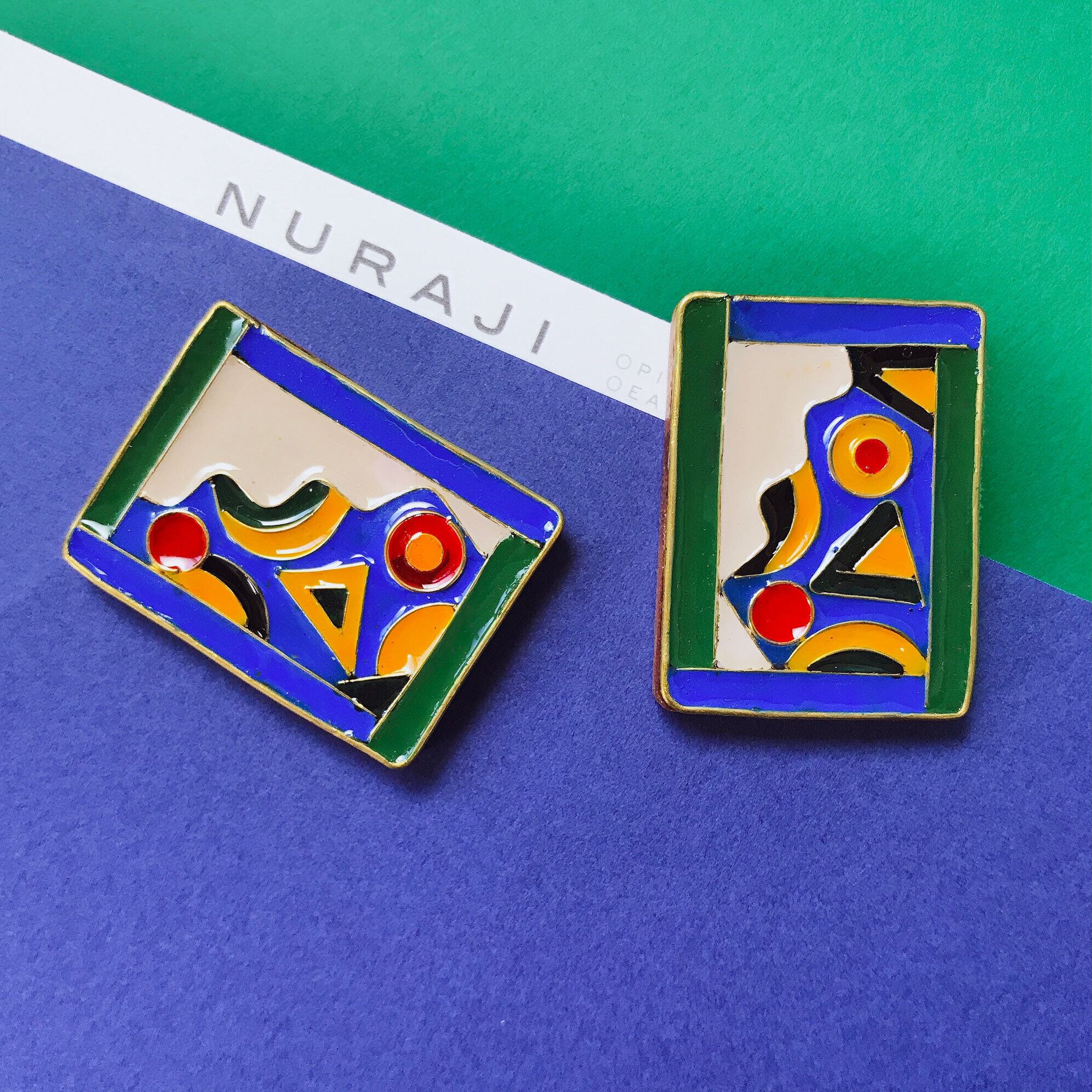 昔のエナメルピンバッチのような金属の凹凸と塗料で幾何学アートを表現。