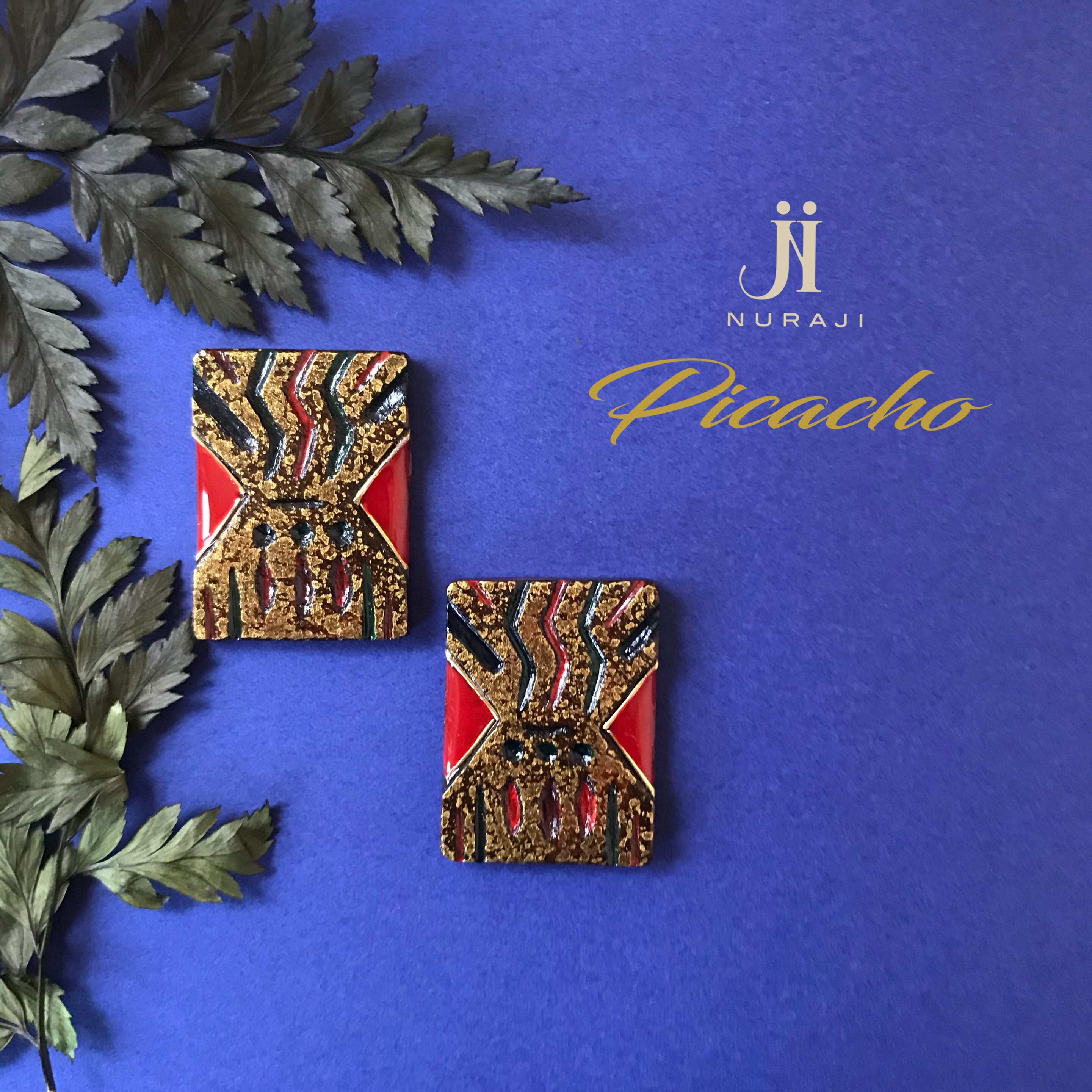 ヴィンテージ塗装を施した木工彫刻ピアスです。