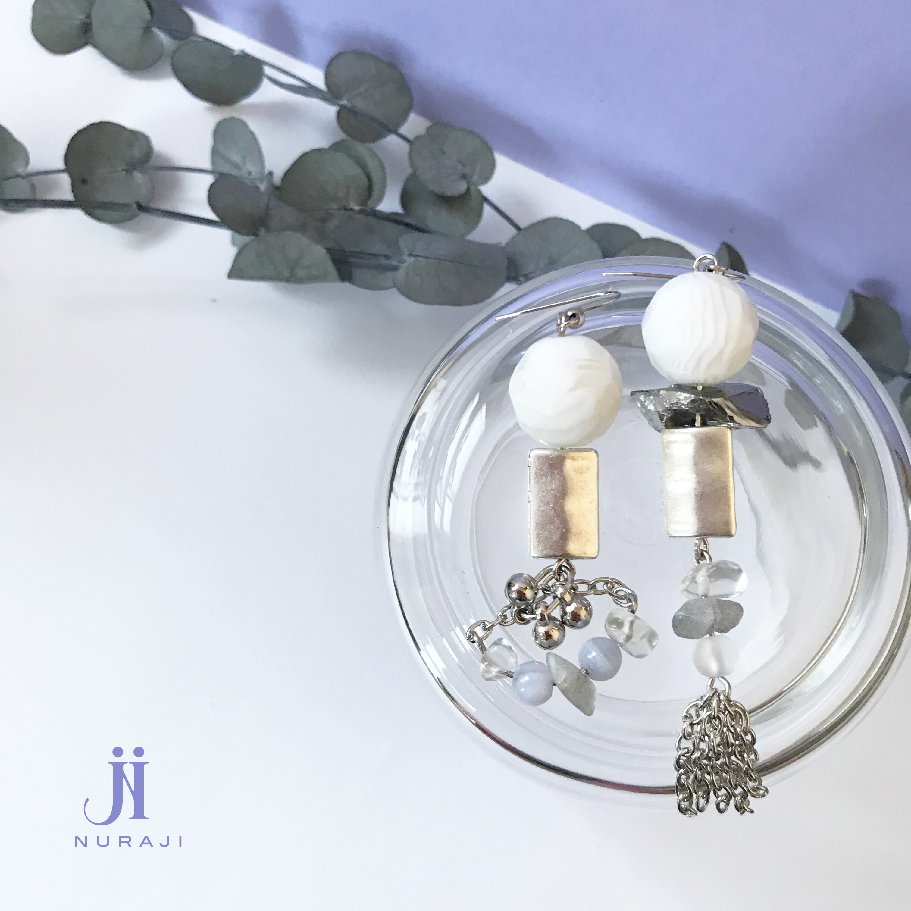 爽やかなシルバー系のアシメピアス(イヤリング)です。