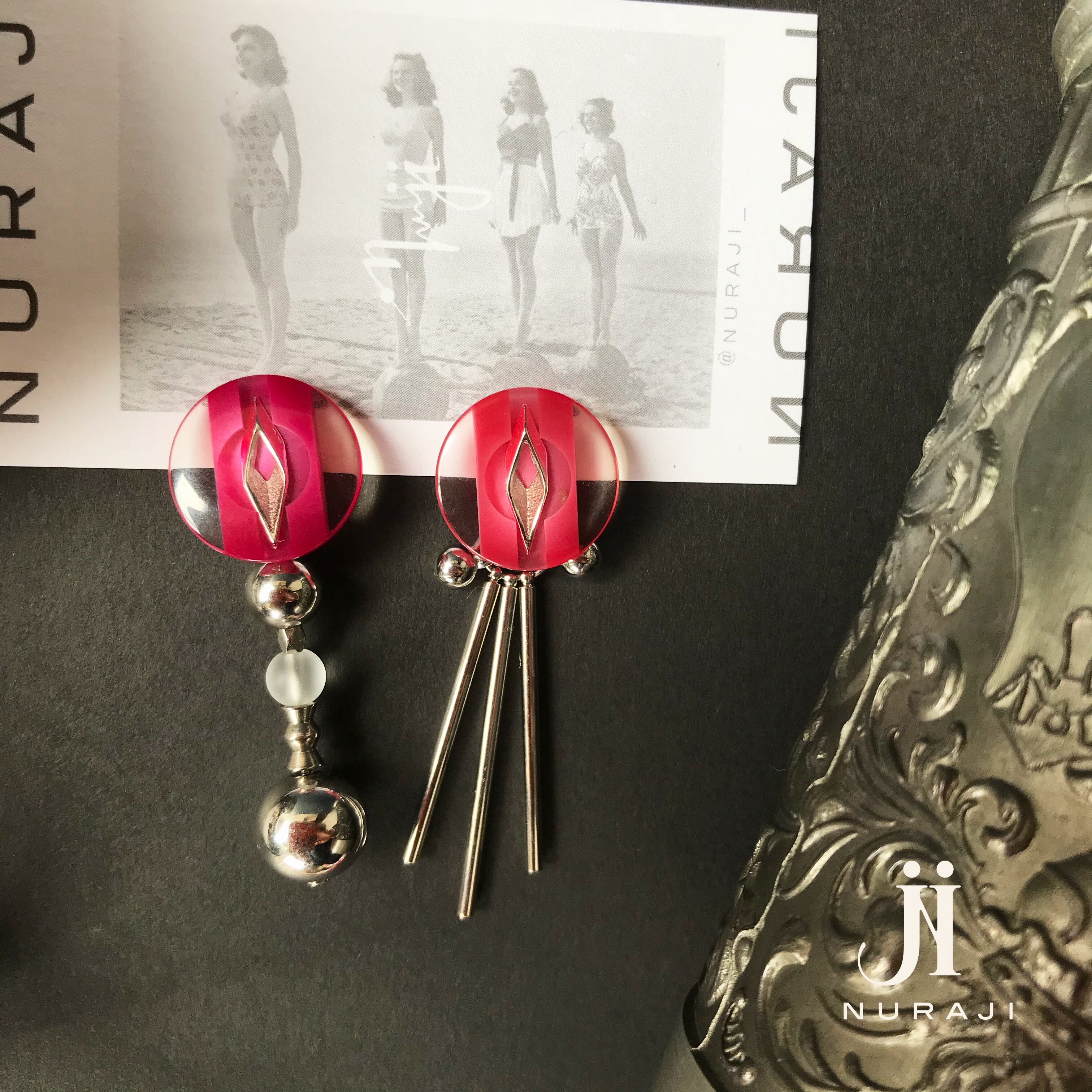 ビビットピンクとシルバー装飾がかわいいヴィンテージボタンを