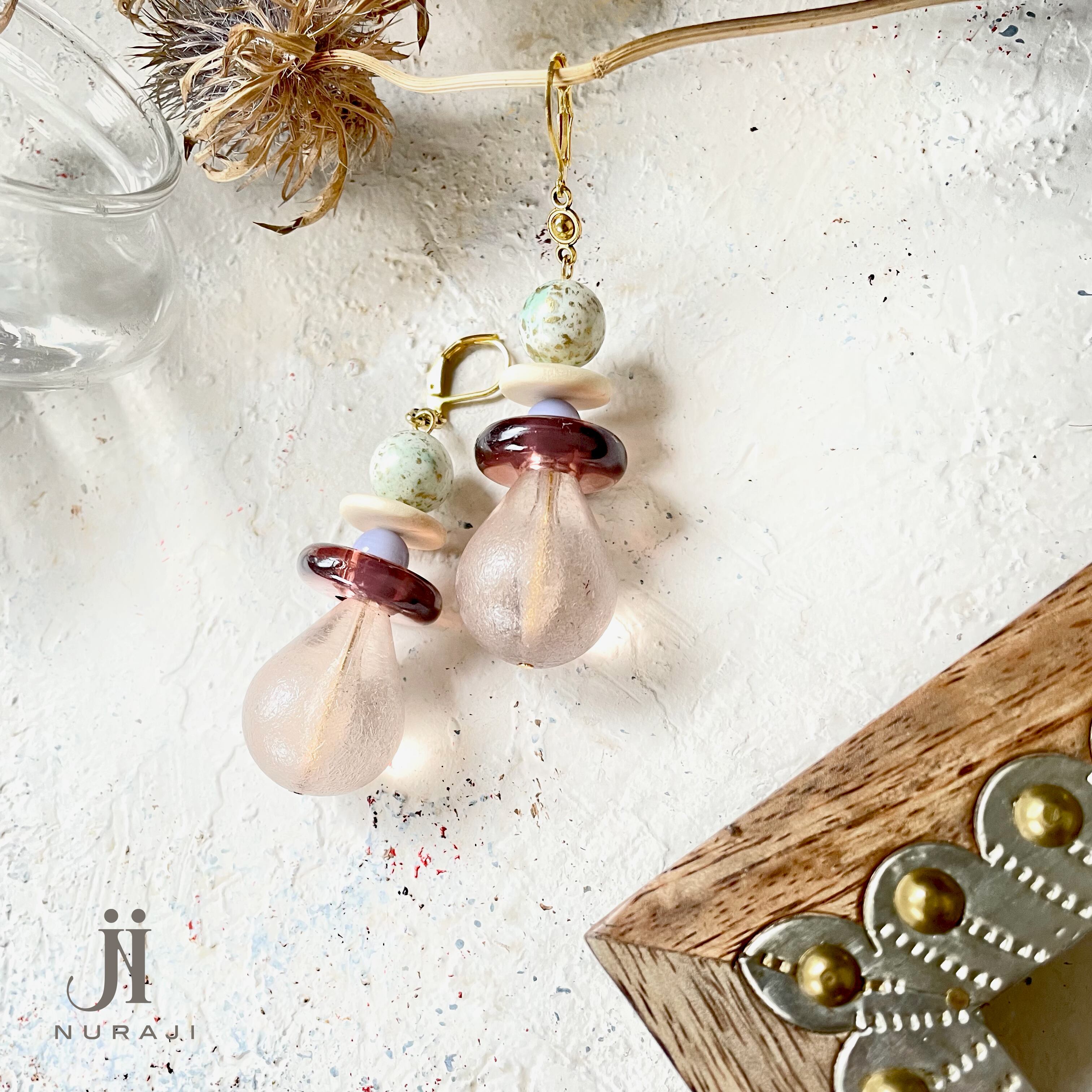まだら模様のビーズは80年代のドイツヴィンテージ。