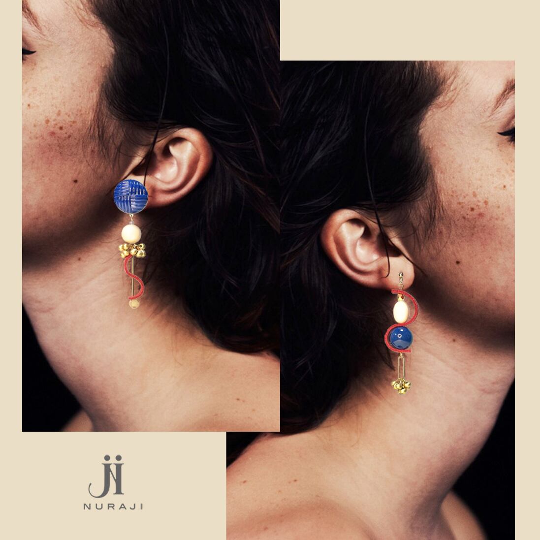 ヴィンテージカボションや真鍮を使用してレトロポップな雰囲気に。
