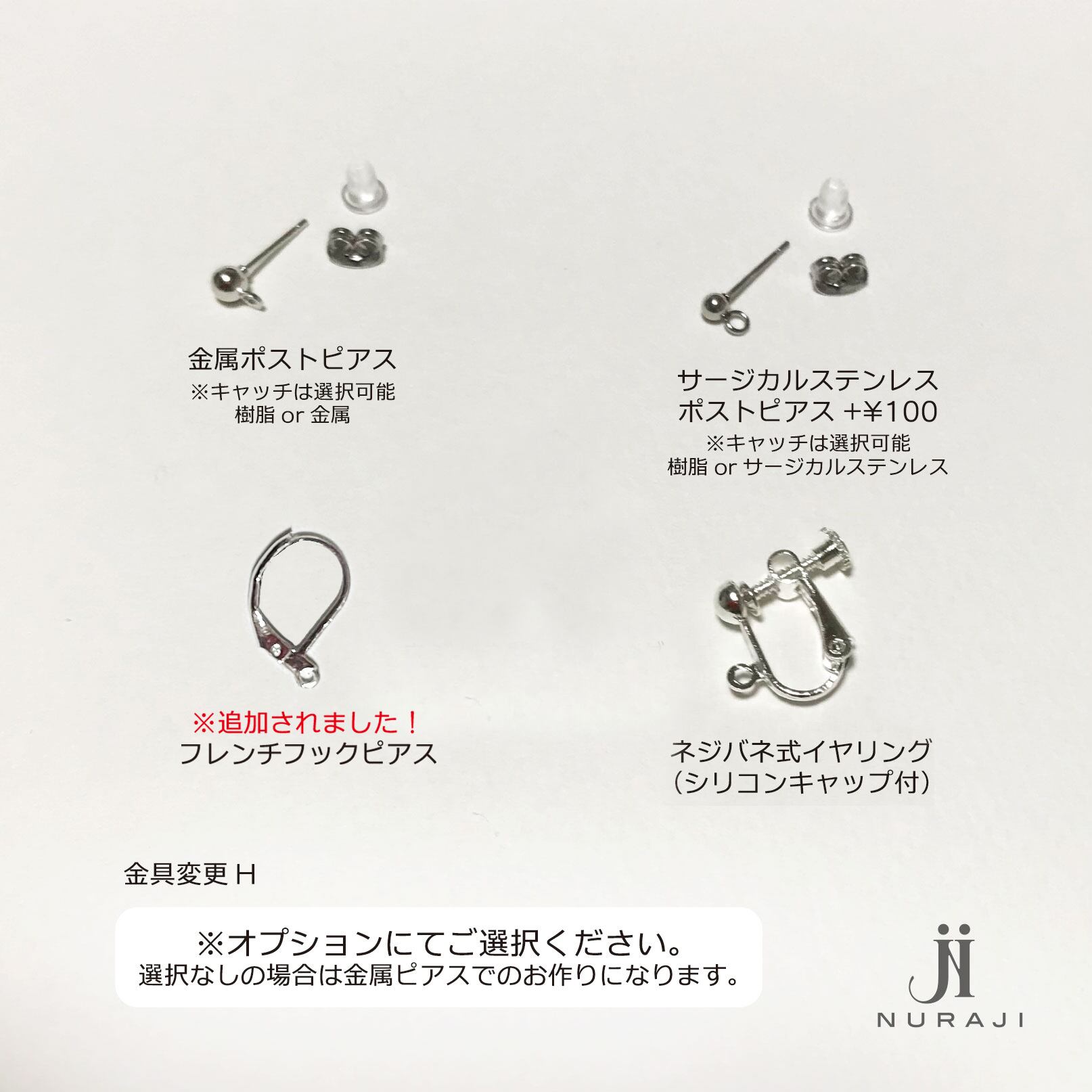 選択がない場合はフレンチフックピアス(画像の仕様)でのお作りになります。