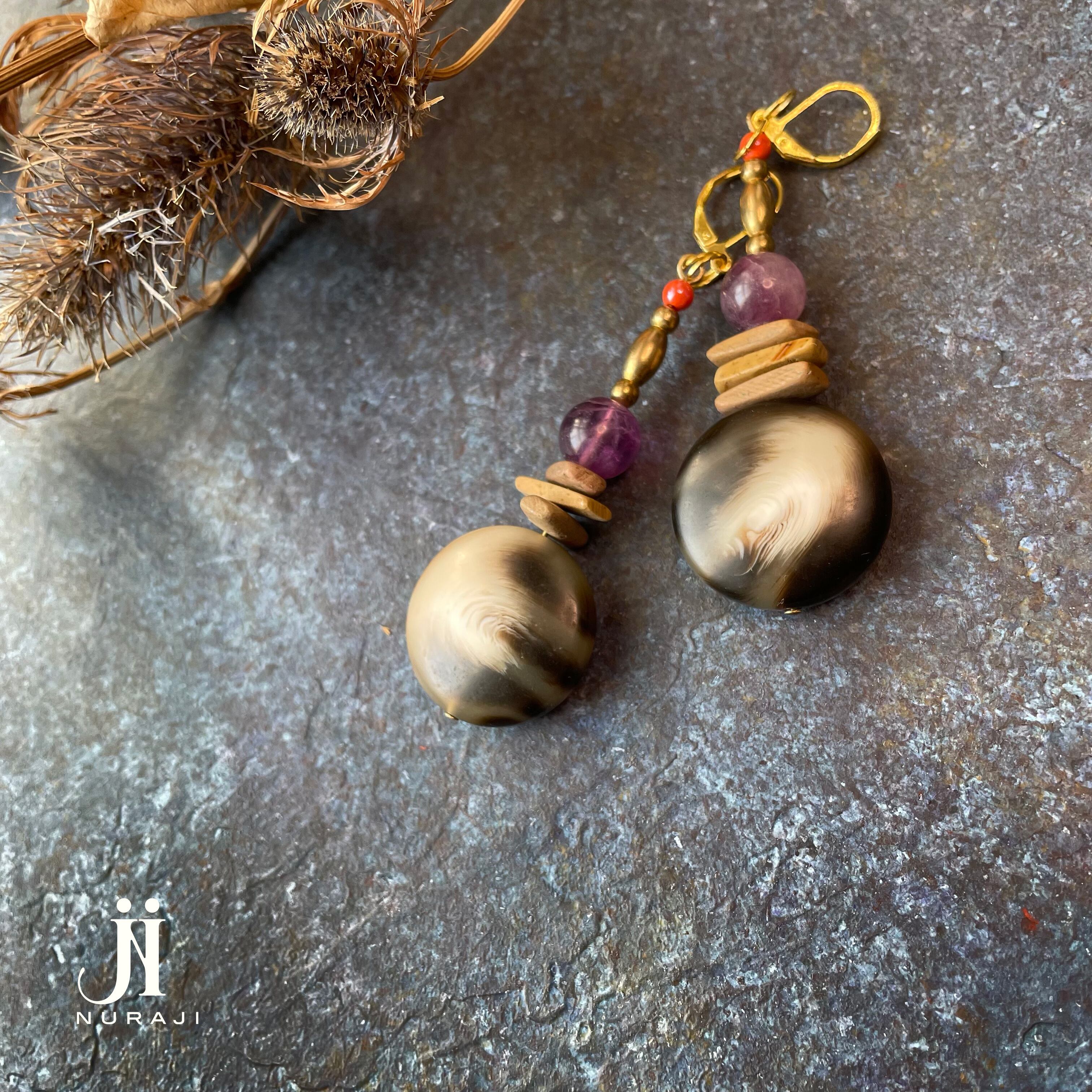 真鍮と天然石を使用したピアスorイヤリング。