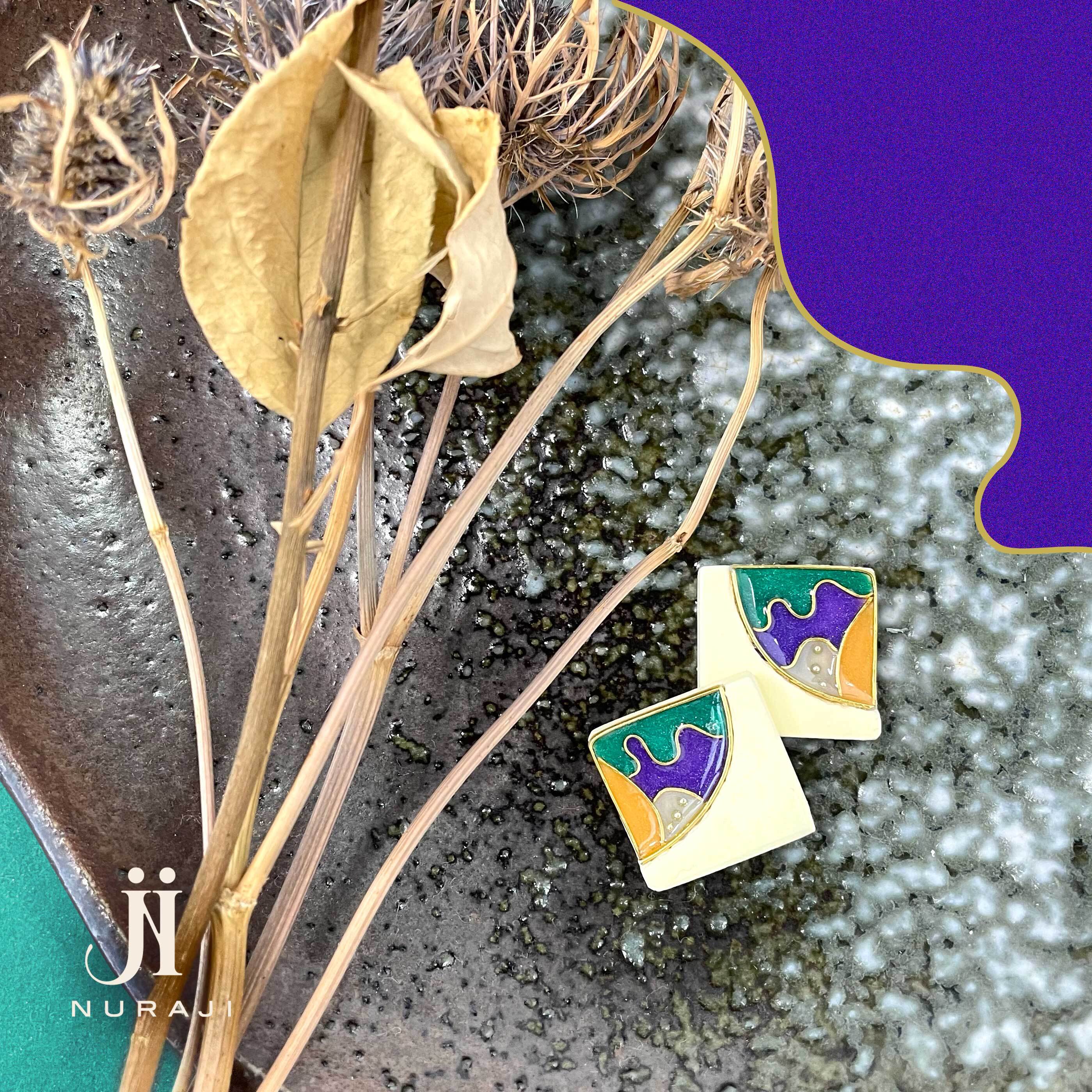 幾何学模様が特徴のウッド&エナメル デザイン。