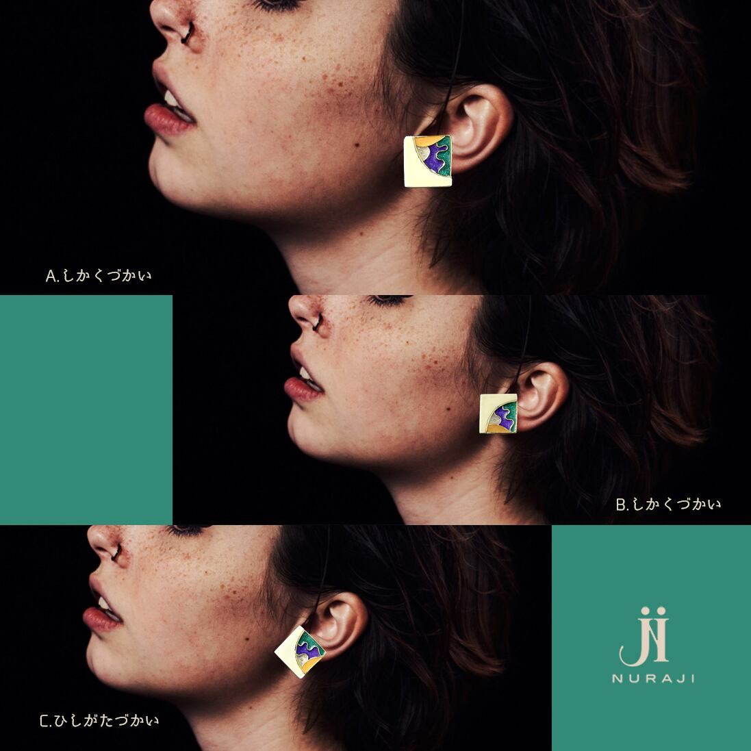 ピアスの場合は、着用時に四角で着けるか、菱形に着けるか、またその向きなど