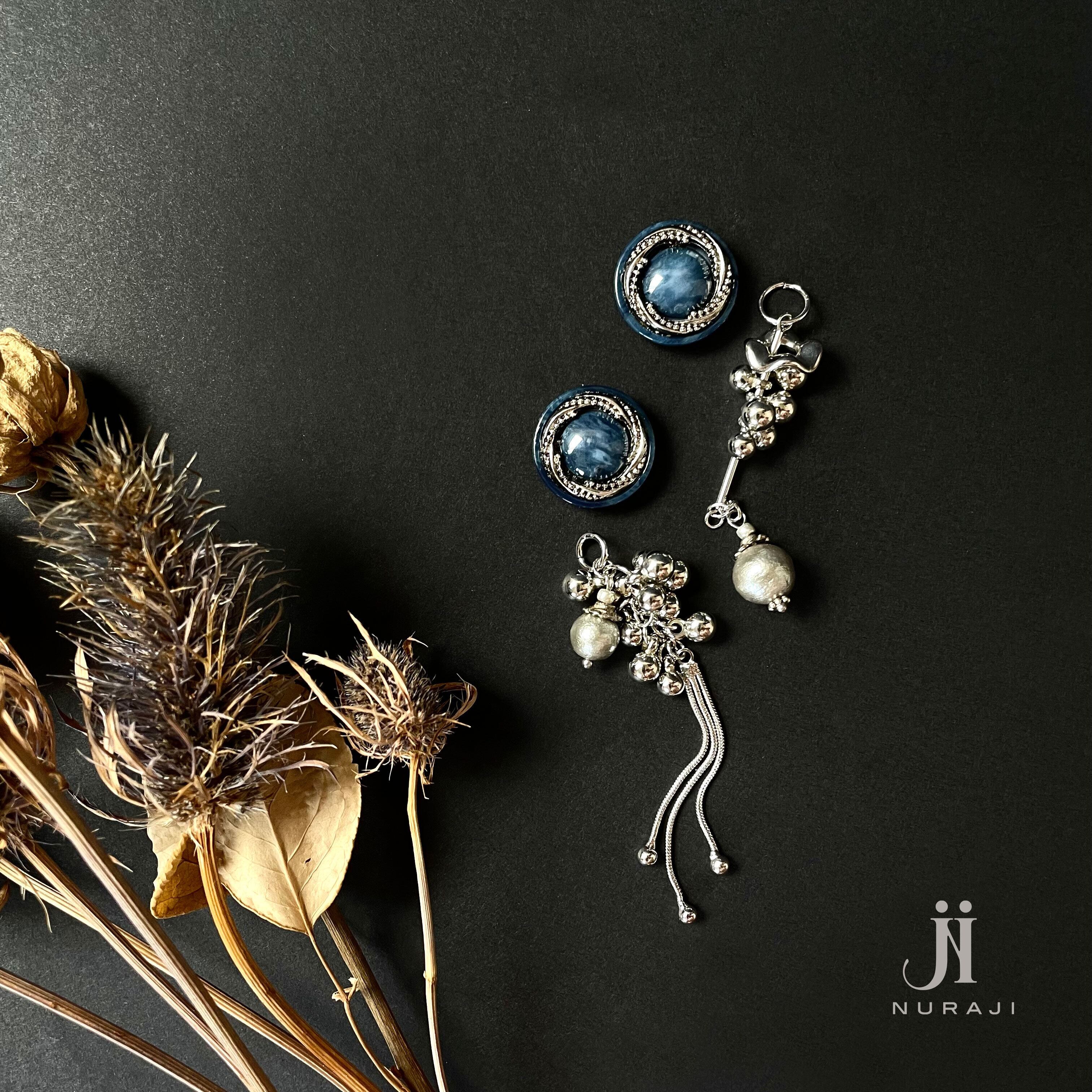 ネイビーにシルバーのつぶつぶ装飾が美しい