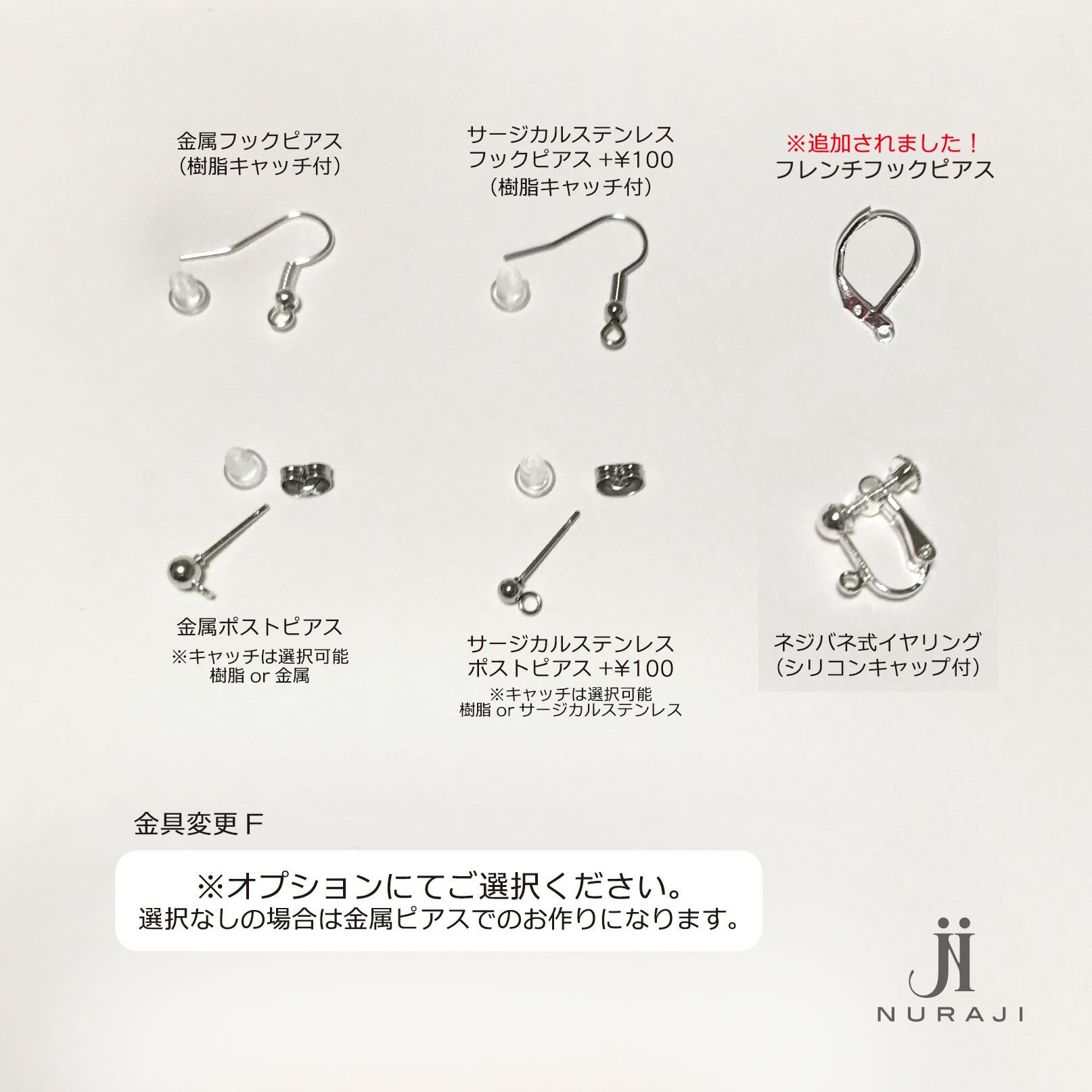 選択がない場合はフレンチフックピアス(画像の仕様)でのお作りになります。