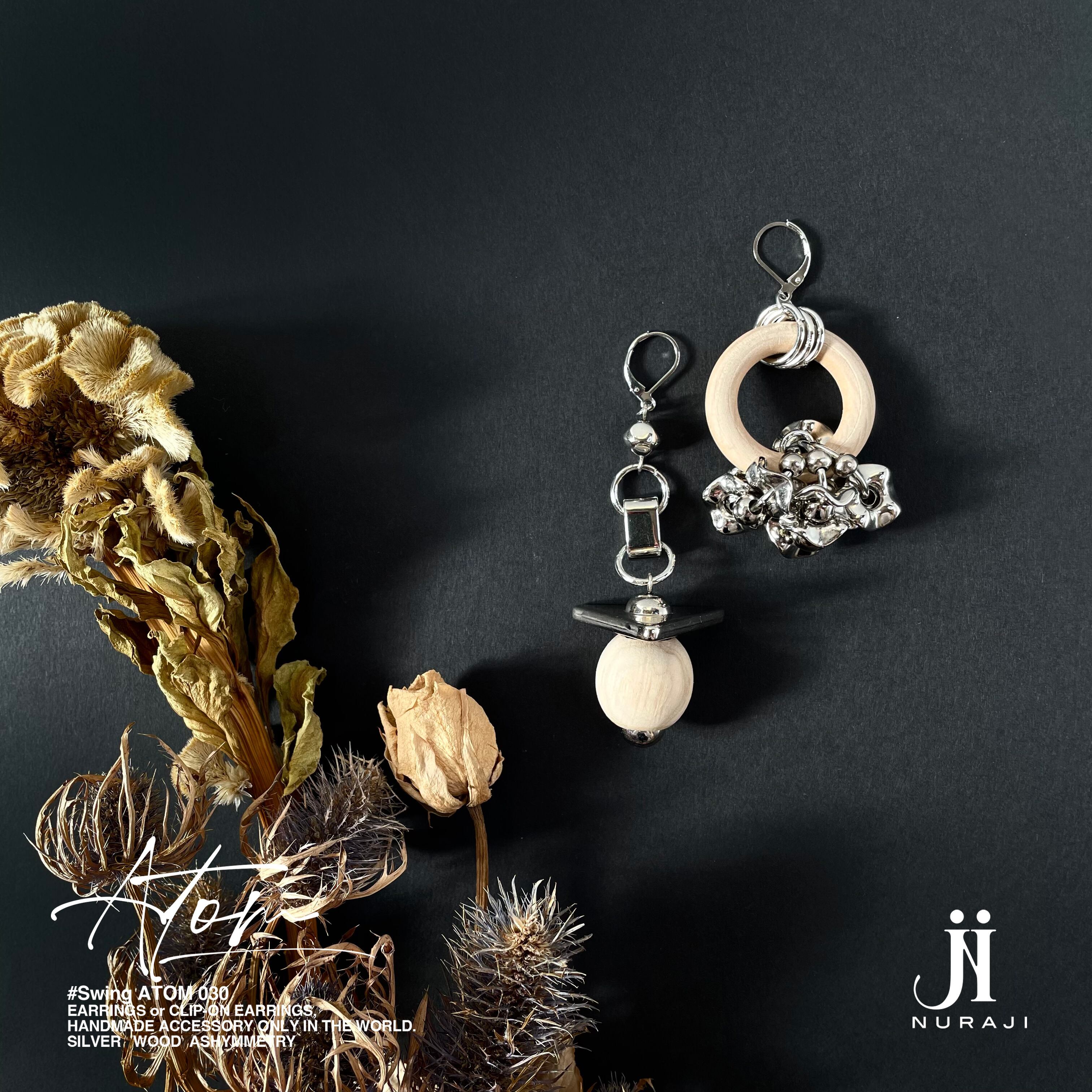 左右で表情の違うシルバー×ナチュラルウッドの個性的デザイン。