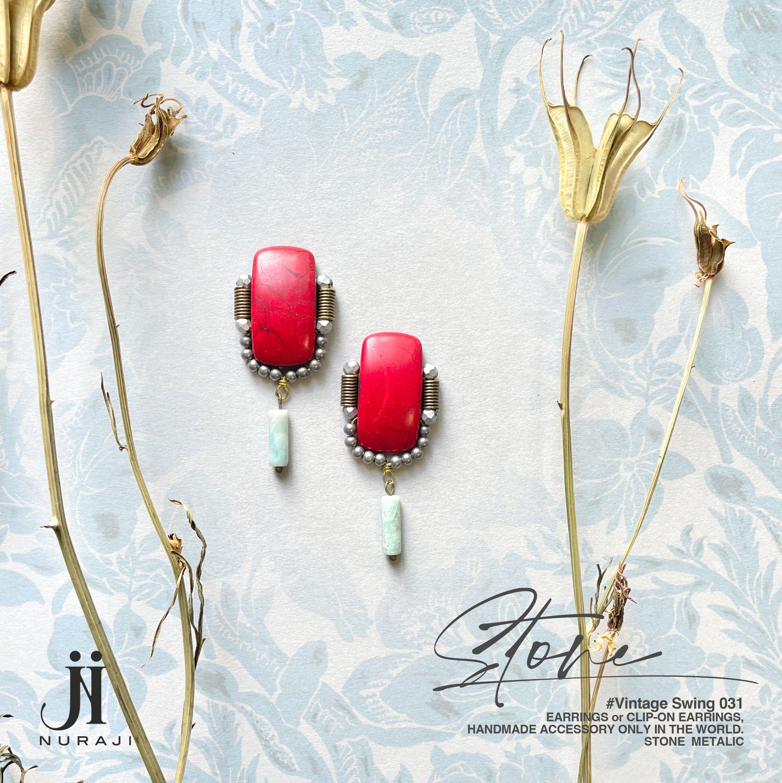 ストーンとヴィンテージビーズを使用したピアスorイヤリング。